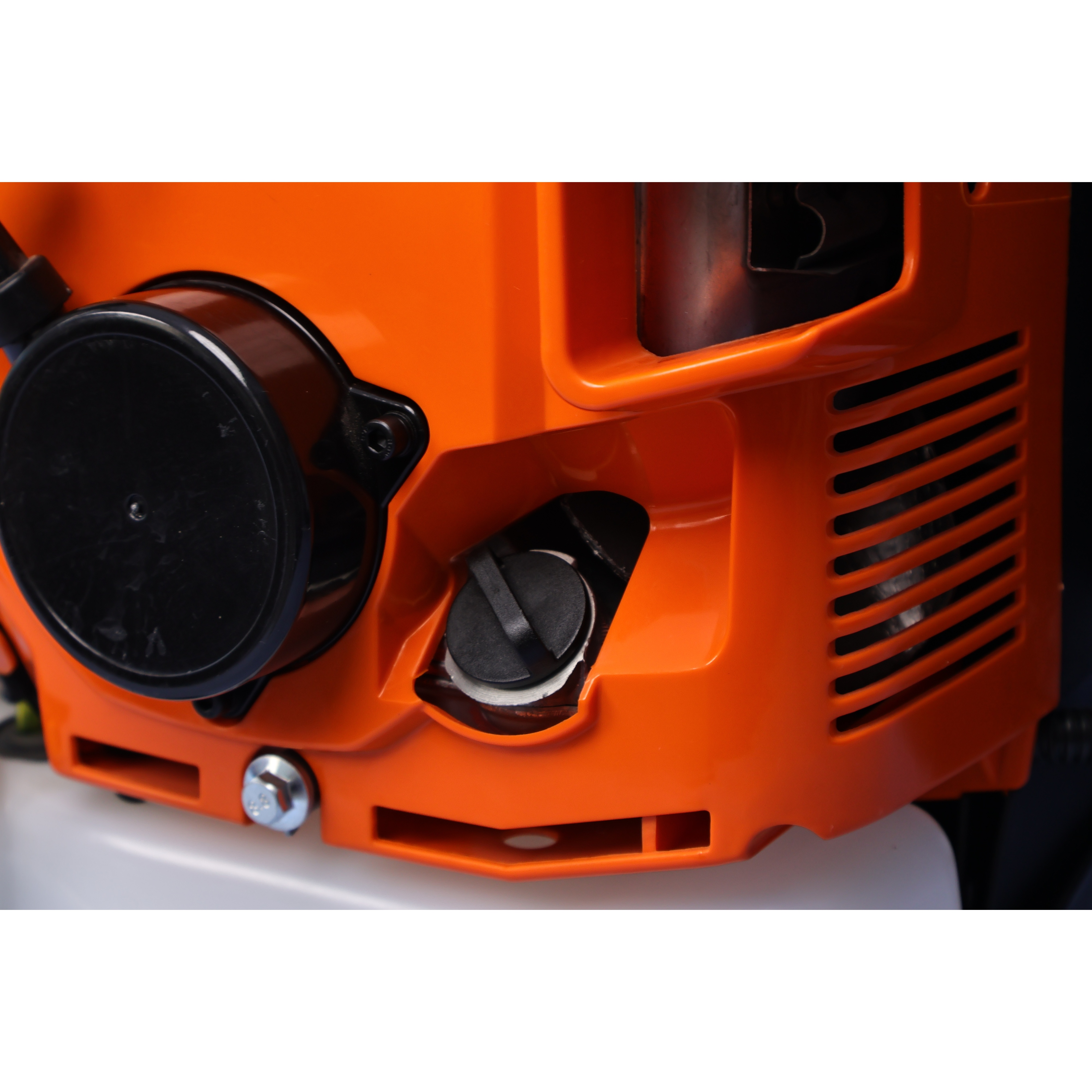 The Kangton handheld gas leaf blower offers the convenience and power you desire. This EB9950 is equipped with Easy Start technology for simpler pull starts, as well as easy 3-Step Starting; prime, choke, pull. User friendly features enhance the design of this blower, such as the translucent fuel tank and the variable speed throttle with cruise control. The extended nozzle with integrated scraper helps clear stubborn leaves & debris allowing you to tackle any job. Handheld, cordless, and powerful, this leaf blower is ready to help you get to work. Backed by a 1-year limited warranty.
